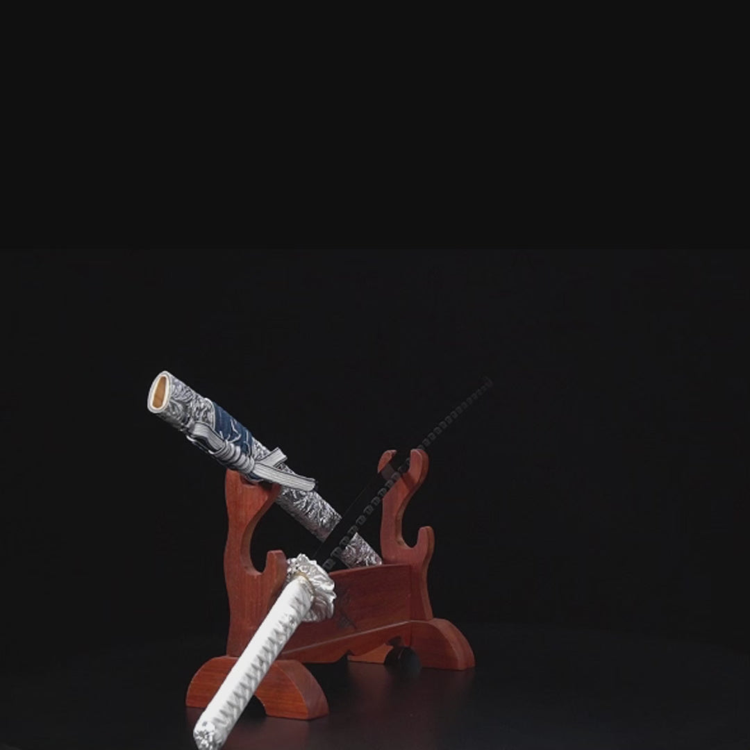 Tutte le nostre katane vengono consegnate in una scatola in broccato, con una borsa in seta, un supporto per katana, un certificato di autenticità e un regalo misterioso.