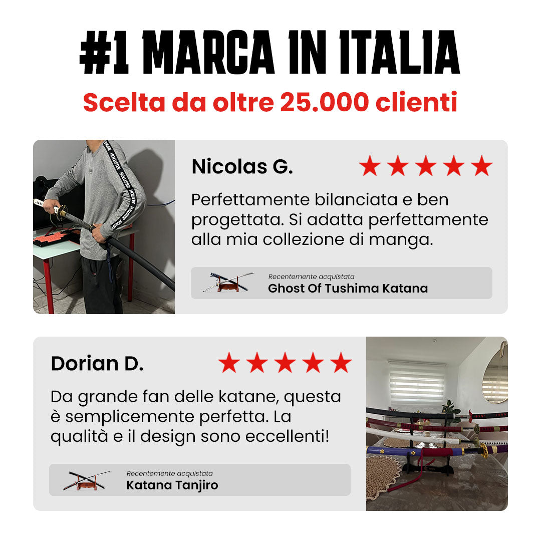 In Katana Italia, siamo orgogliosi della qualità e della maestria artigianale che caratterizzano le nostre katane e repliche fatte a mano.