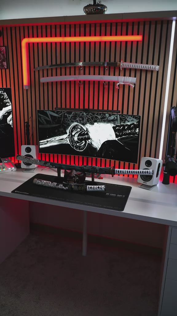 Ho posizionato questa katana proprio sopra il mio schermo, e dona al mio setup un tocco epico.